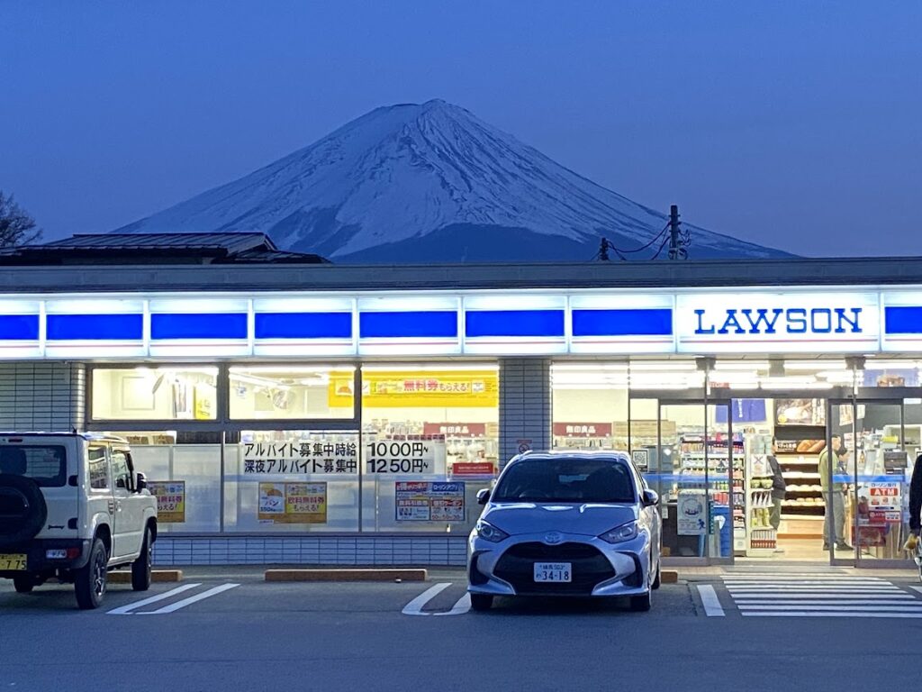 I rented a bicycle and rode around Lake Kawaguchi, stopping constantly to admire Fuji’s reflection shimmering across the water. After taking the ropeway up for panoramic views, I ended the day at the infamous Lawson watching the mountain glow pink and lavender at sunset — easily one of the most peaceful moments of my trip.
